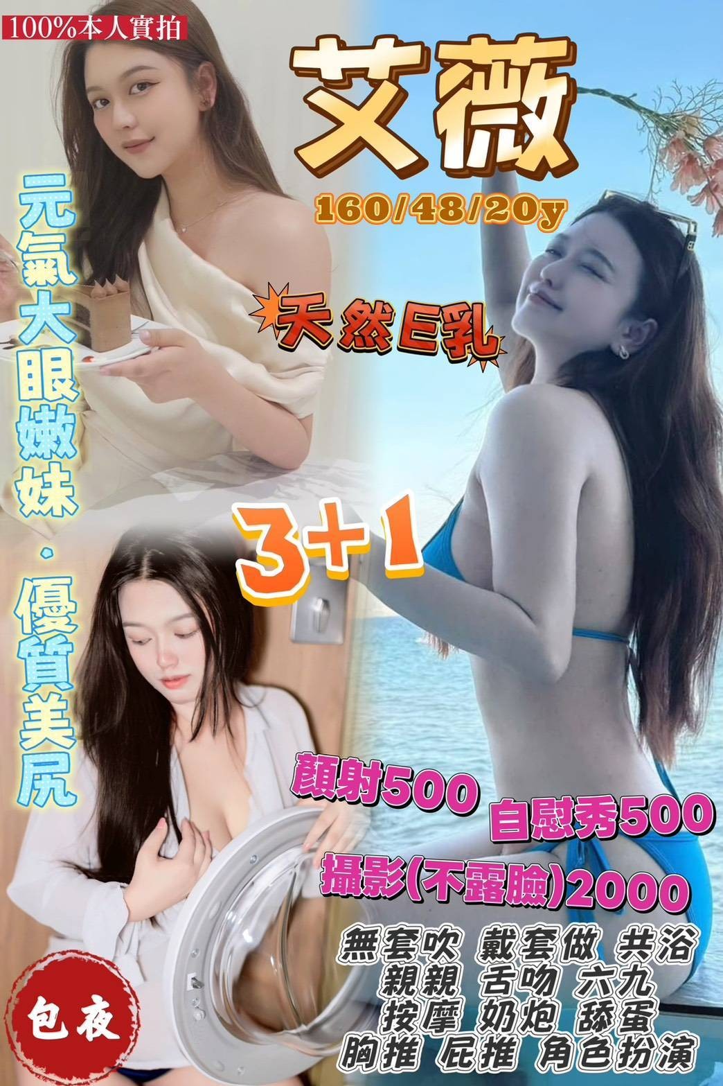 無套吹 戴套做 共浴 親親 舌吻 品鮑 69 按摩 奶炮 艷舞 胸推 絲襪 自慰秀 情趣用品