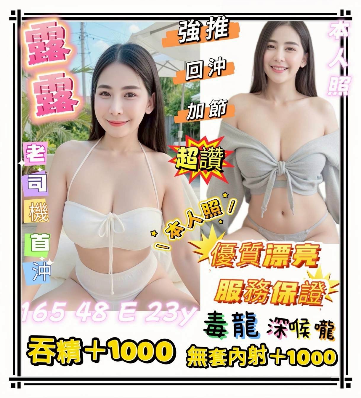 無套吹/戴套做/小親親/奶炮/胸推/共浴/按摩