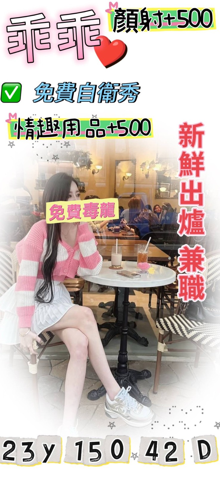 美腿學生妹,精緻漂亮的臉蛋,纖瘦勻稱的身材,氣質溫柔帶點小活潑,電動翹臀很會扭,口活非常到位,是為慾望比較強的妹子,適合一次多叫幾節,好好滿足彼此!