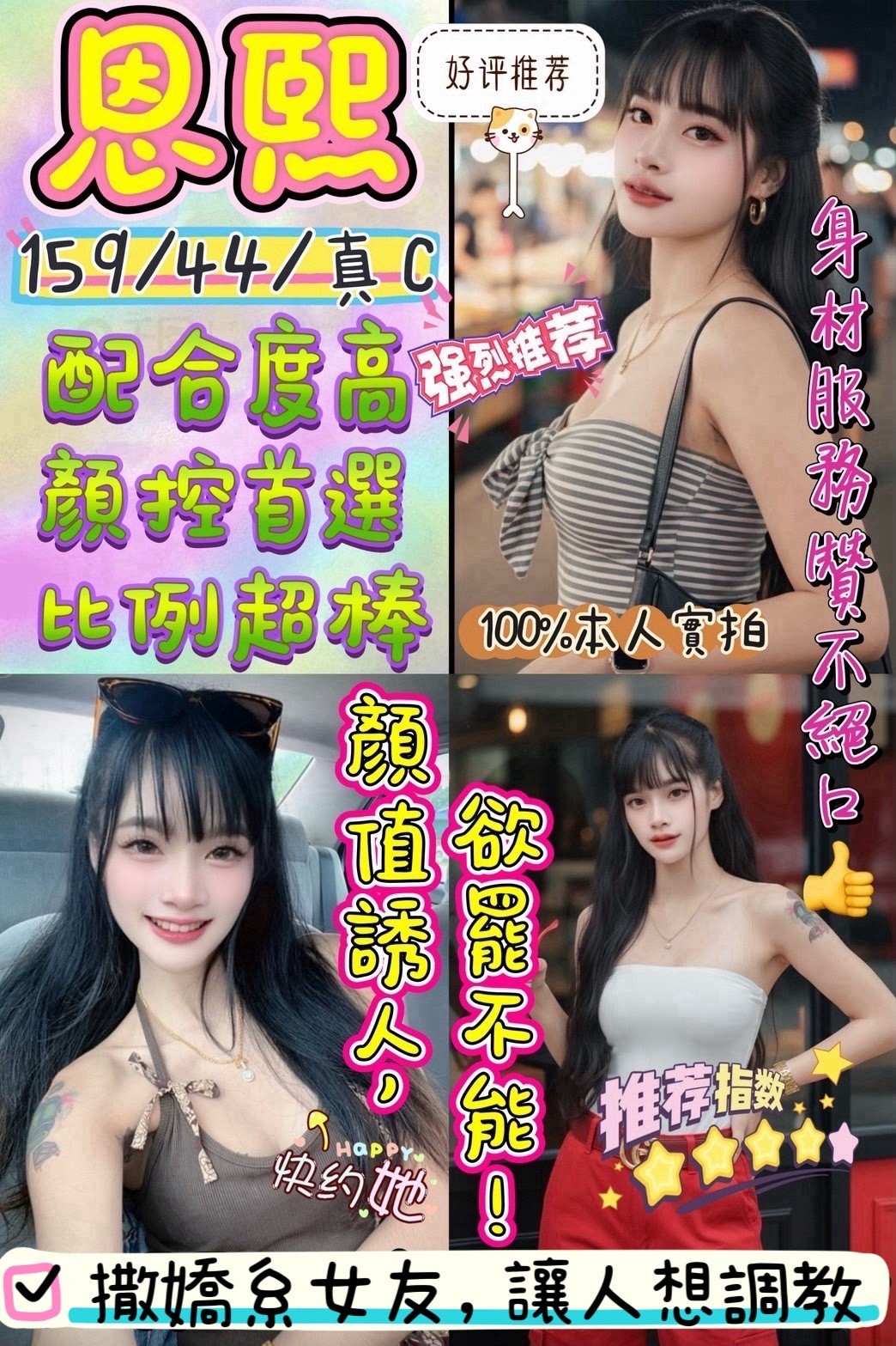 無套吹/共浴殘廢澡/親密KISS(視個人衛生和妹妹現場感覺.自行開發)/按摩/舔蛋/奶泡/胸推/屁推/69品鮑/自慰秀